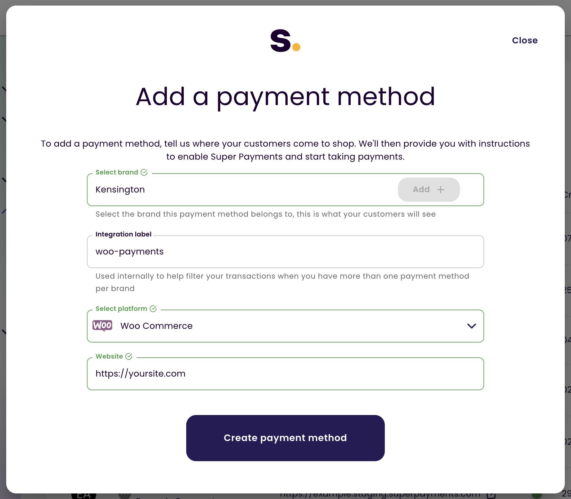 - That's it! Super Payments is now an extra payment method available to your customers 🎉